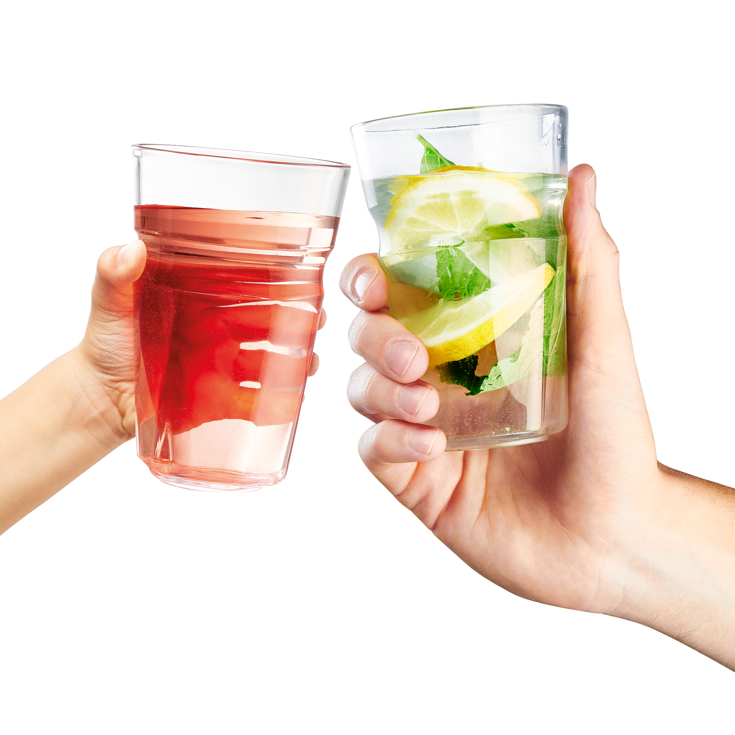 What is the biggest disadvantage of great glasswork? It breaks. We decided to make a beautiful glass that won’t shatter. We added extra grip so you can not drop it. We also changed the material from glass to high quality plastic with a crystal-clear look. And it will keep the crystal-clear look overtime. Then we also added some accessories to give you even more grip and a stylish look.