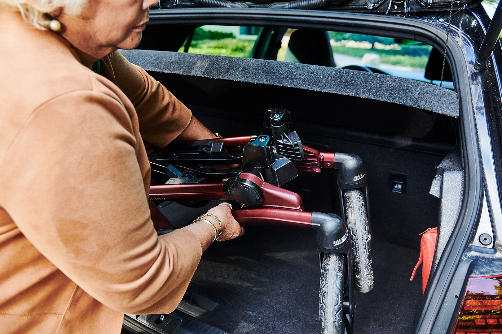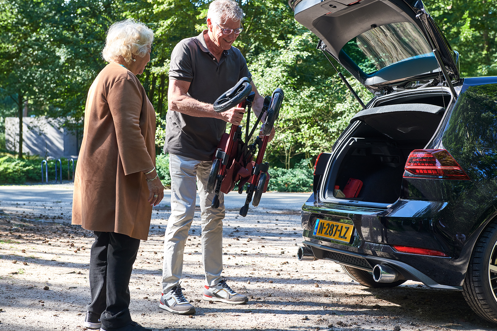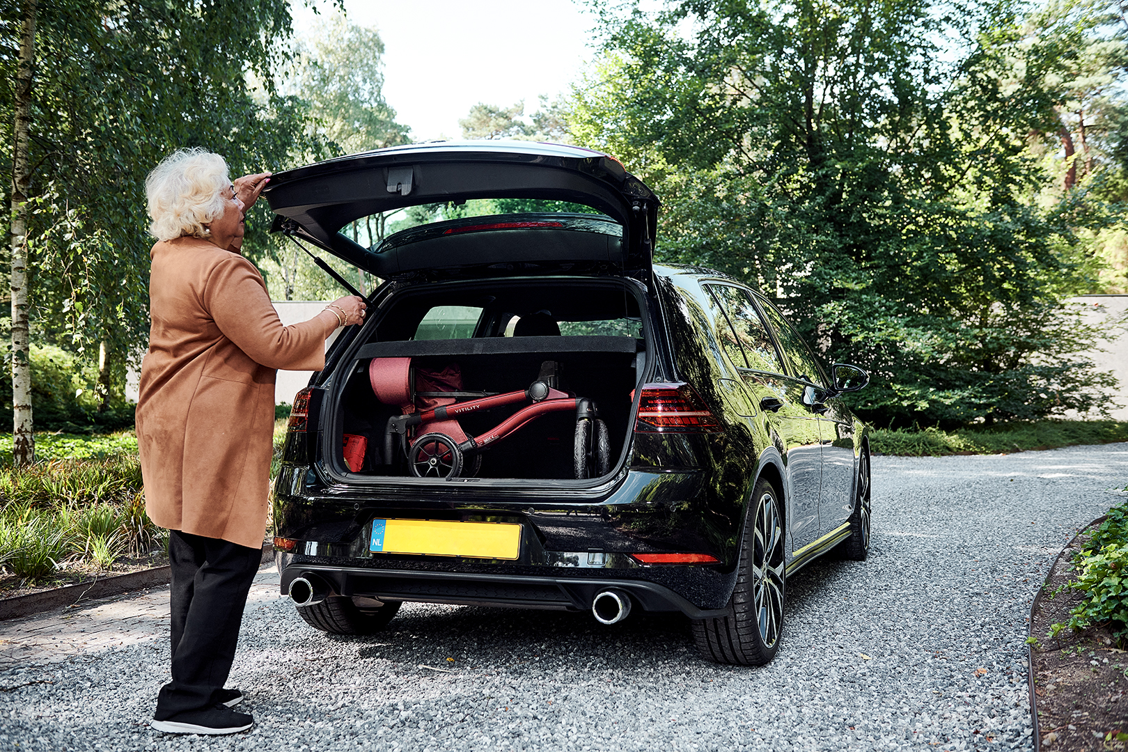 We previously talked about the importance of getting from point A to point B, and sometimes, a car is needed for that. It’s unfortunate when you have limited trunk space and can’t take your loyal companion along. To ensure that you can always bring the rollator with you, we took into account a double-fold system in the design process.