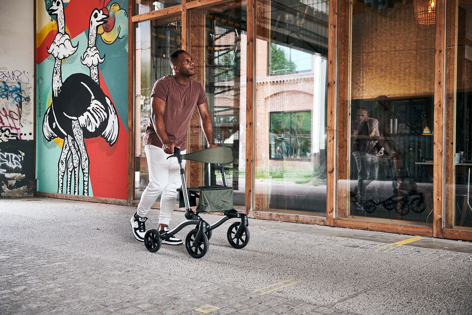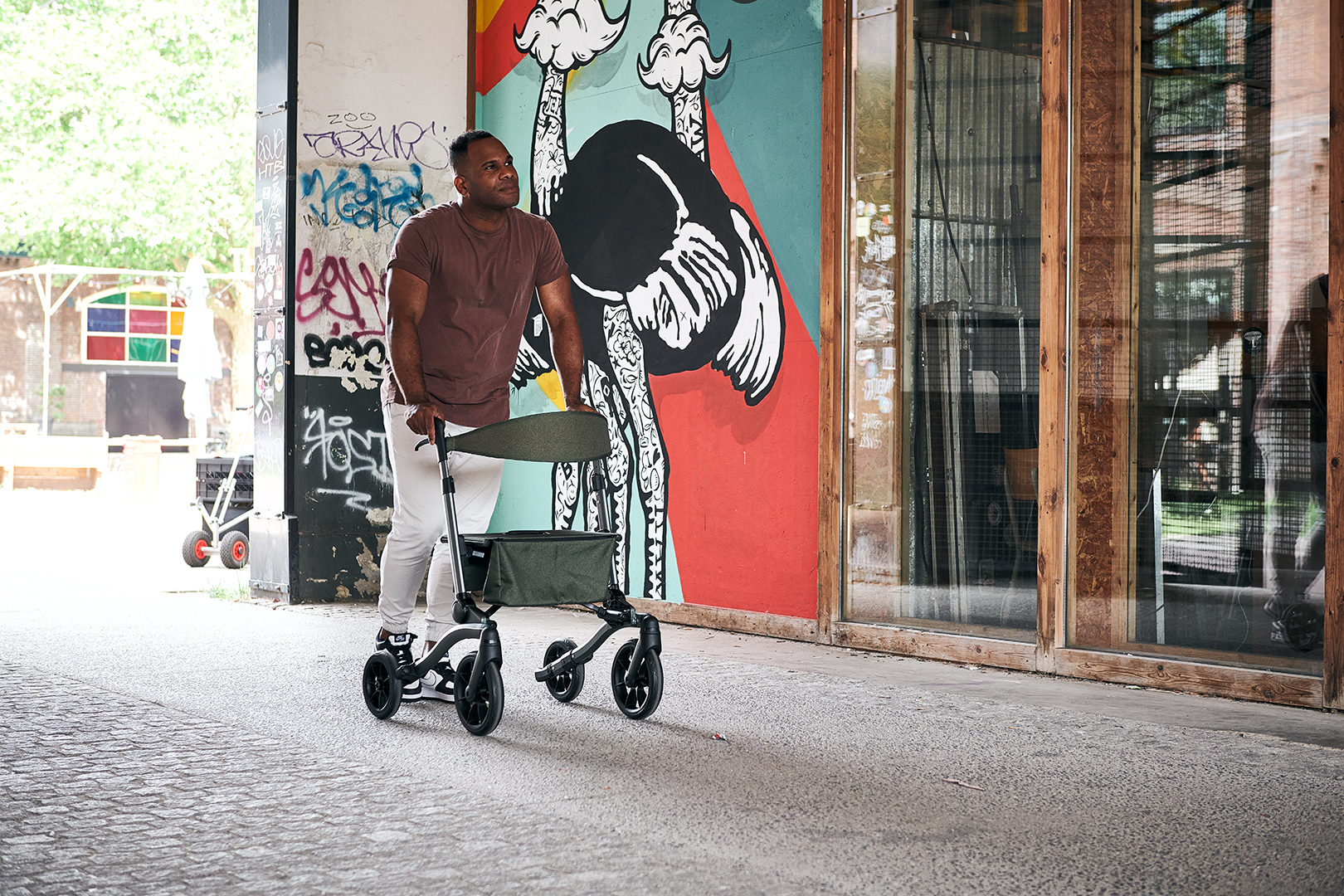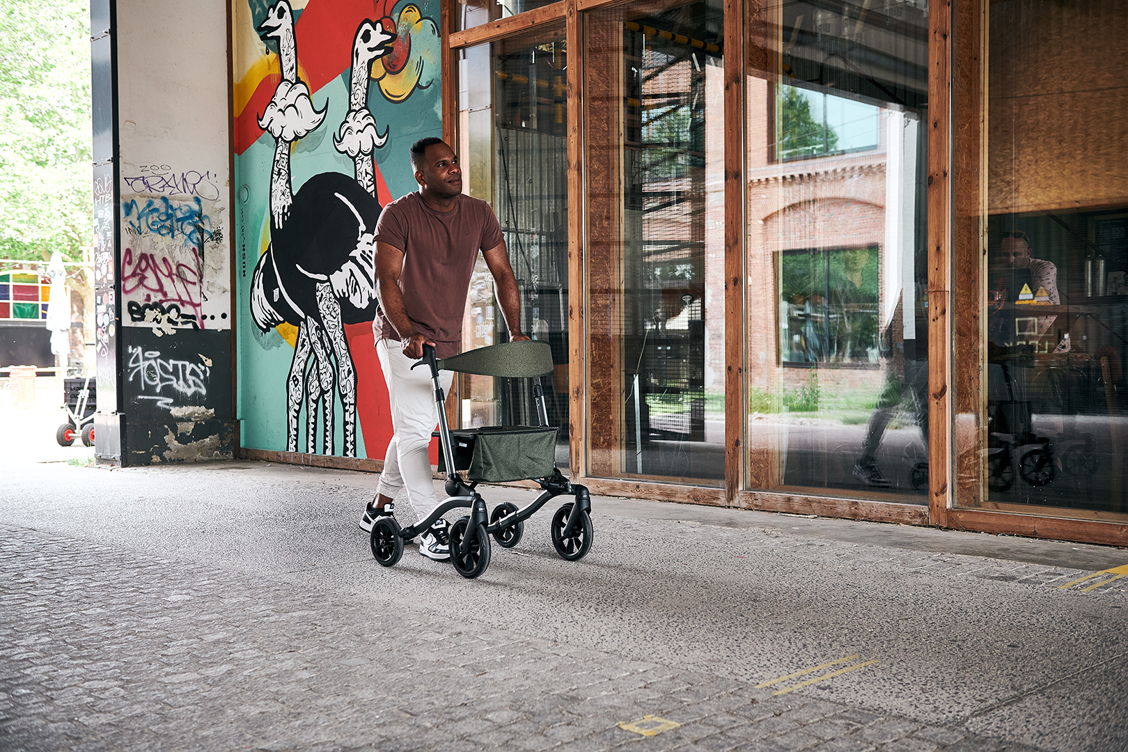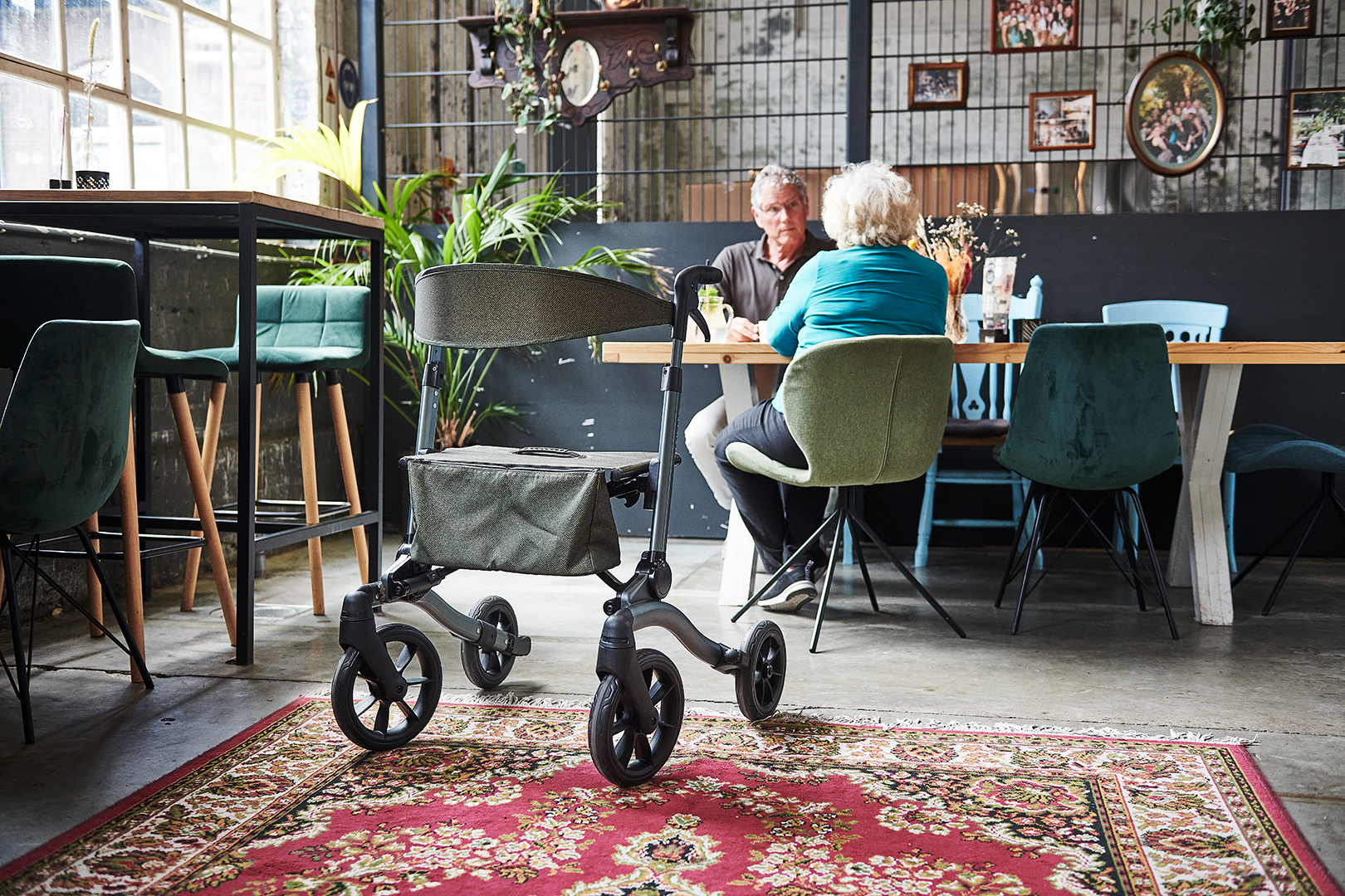 We refer to a ‘solid rollator’ in the title, and that’s not without reason. The design is so robust that it can support up to 120 kg.