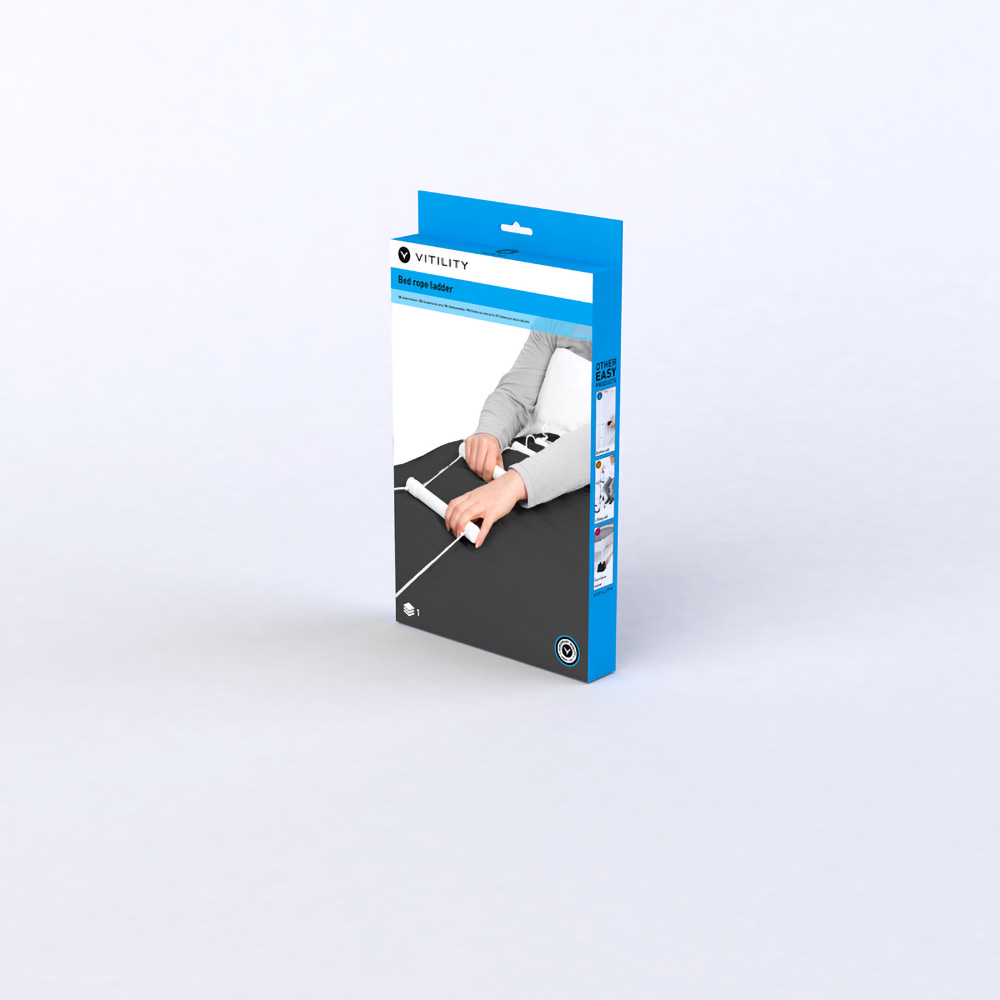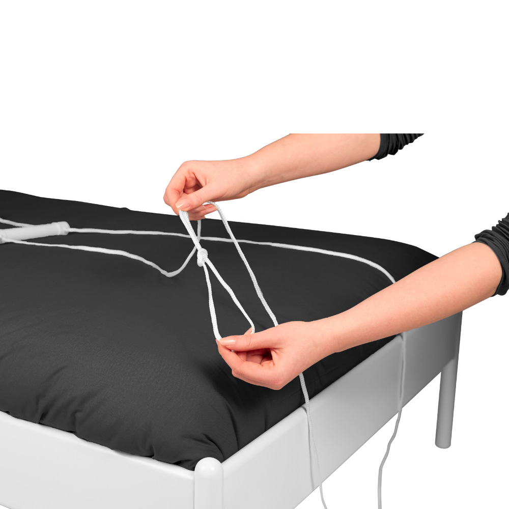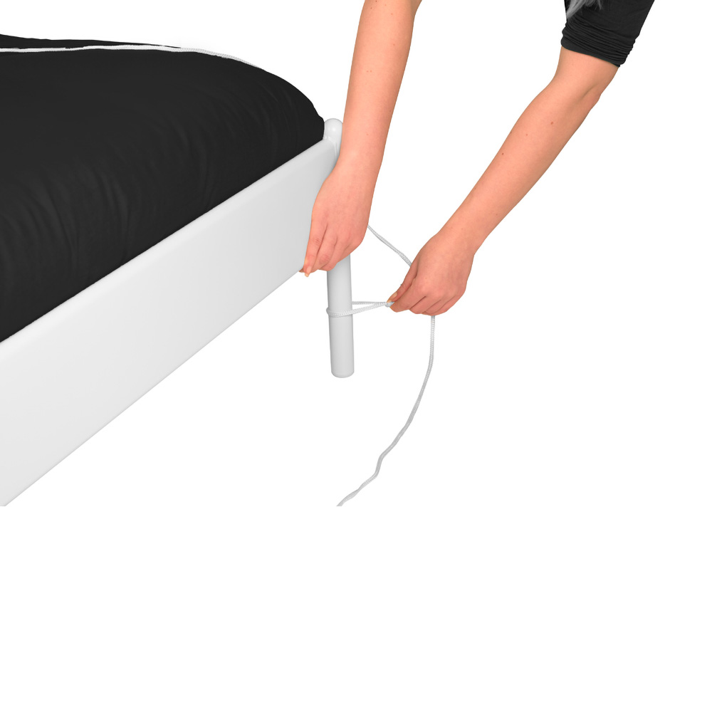 The bed rope ladder ensures easy laying or sitting down in bed. The bed rope ladder consists of four grips which are made of inflexible plastic. The noose at the end of the bed rope ladder has to be fixed to the bottom of the bed.
