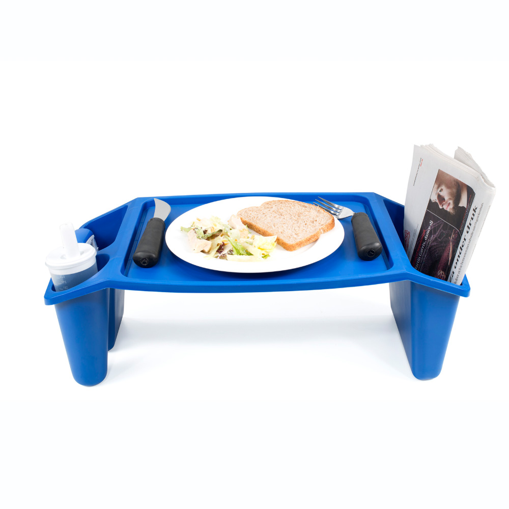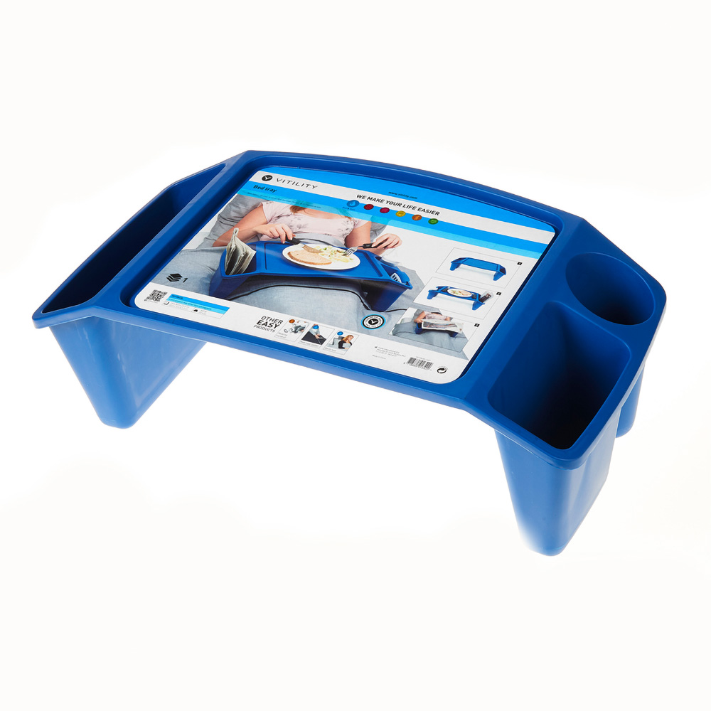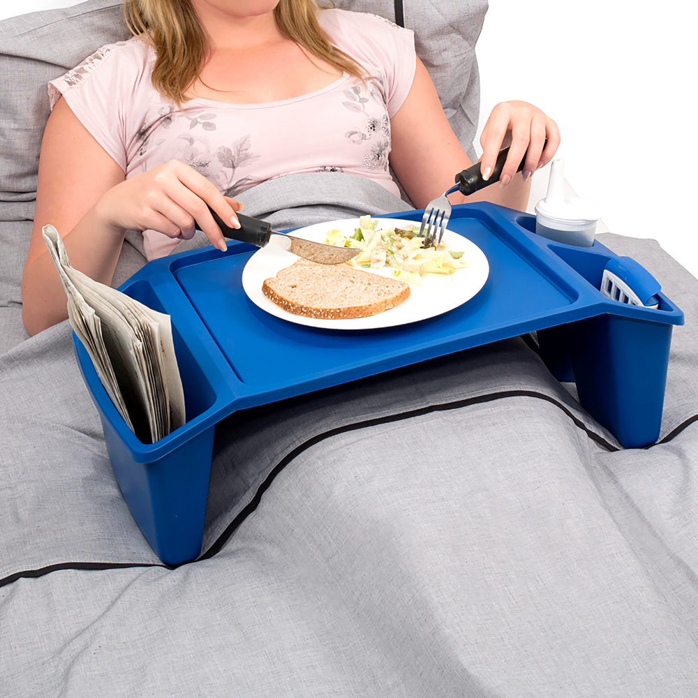 The bed tray can be used to eat, read and write in bed. On the sides there is space to store books and magazines. The sides also feature handles, so the bed tray is easy to pick up. It has a raised edge to prevent things sliding off.