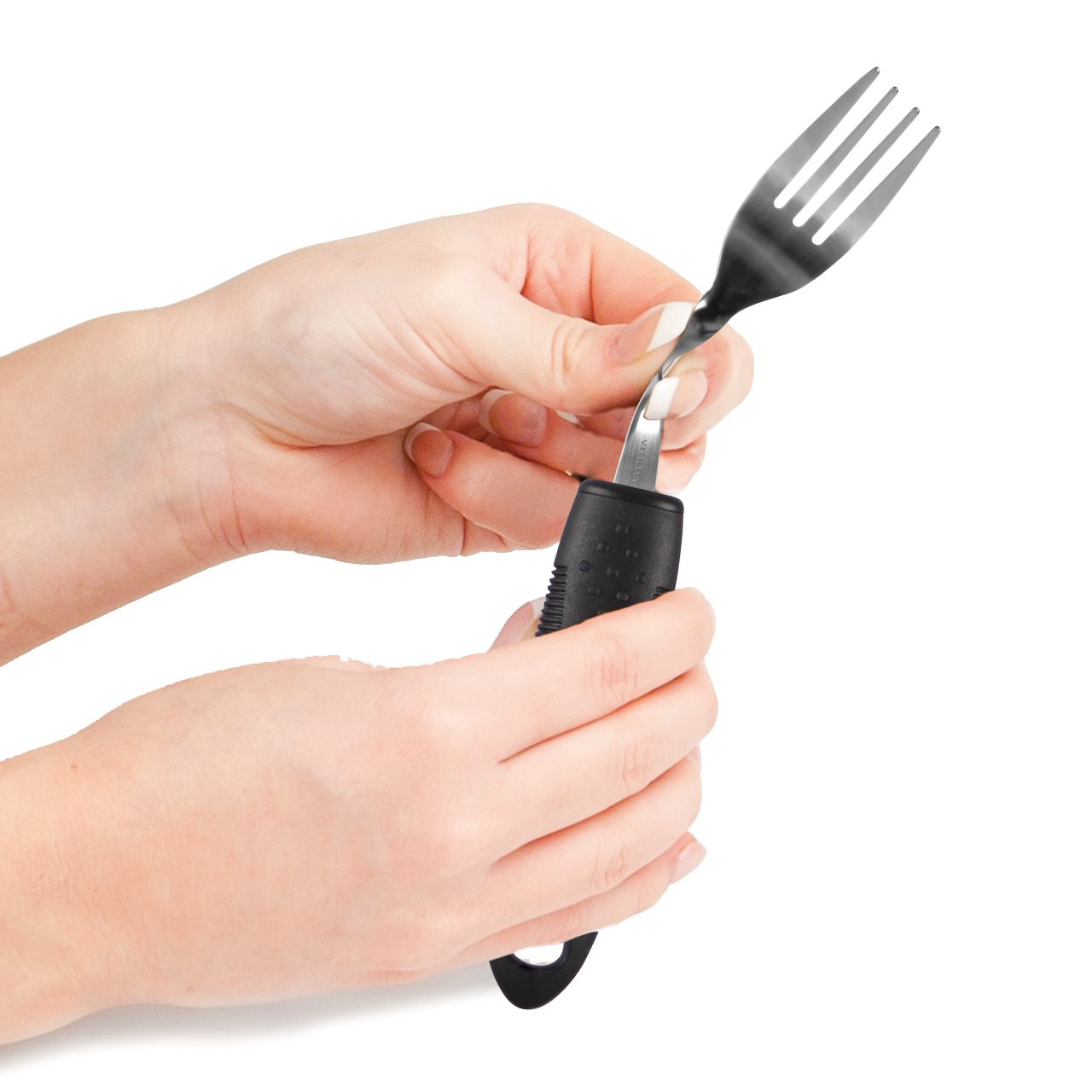 This cutlery has a soft ergonomically shaped handle, which combined with the structure of the material, ensures a comfortable grip. The fork can be used as it is or can be adjusted/bended to fit personal needs, this can be done a few times.