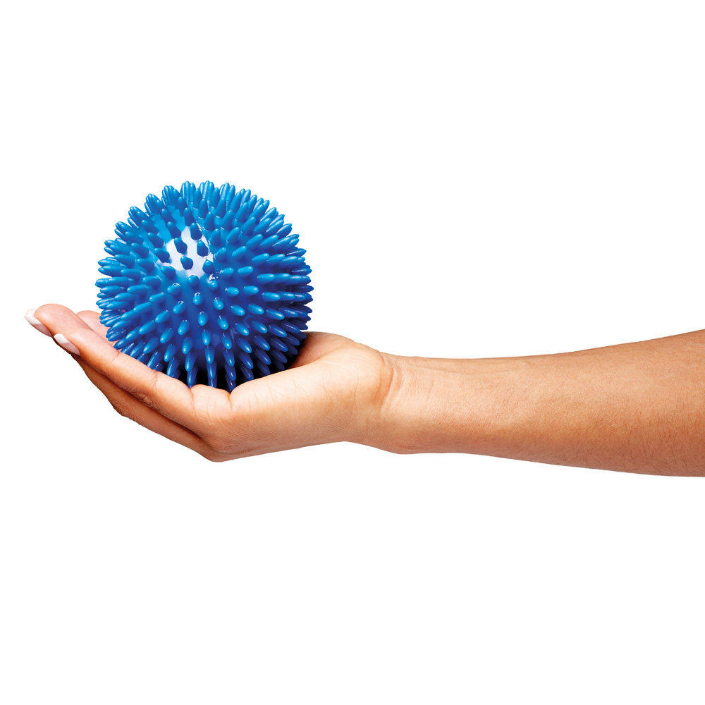 The flexible plastic ball is suitable for finger exercises and grip enhancements. It stimulates the sense of touch in the hands and improves the flexibility and strength in the fingers. The ball is covered with soft rounded spines, which make sure that the nerves in the hand are stimulated and the muscles get stimulated