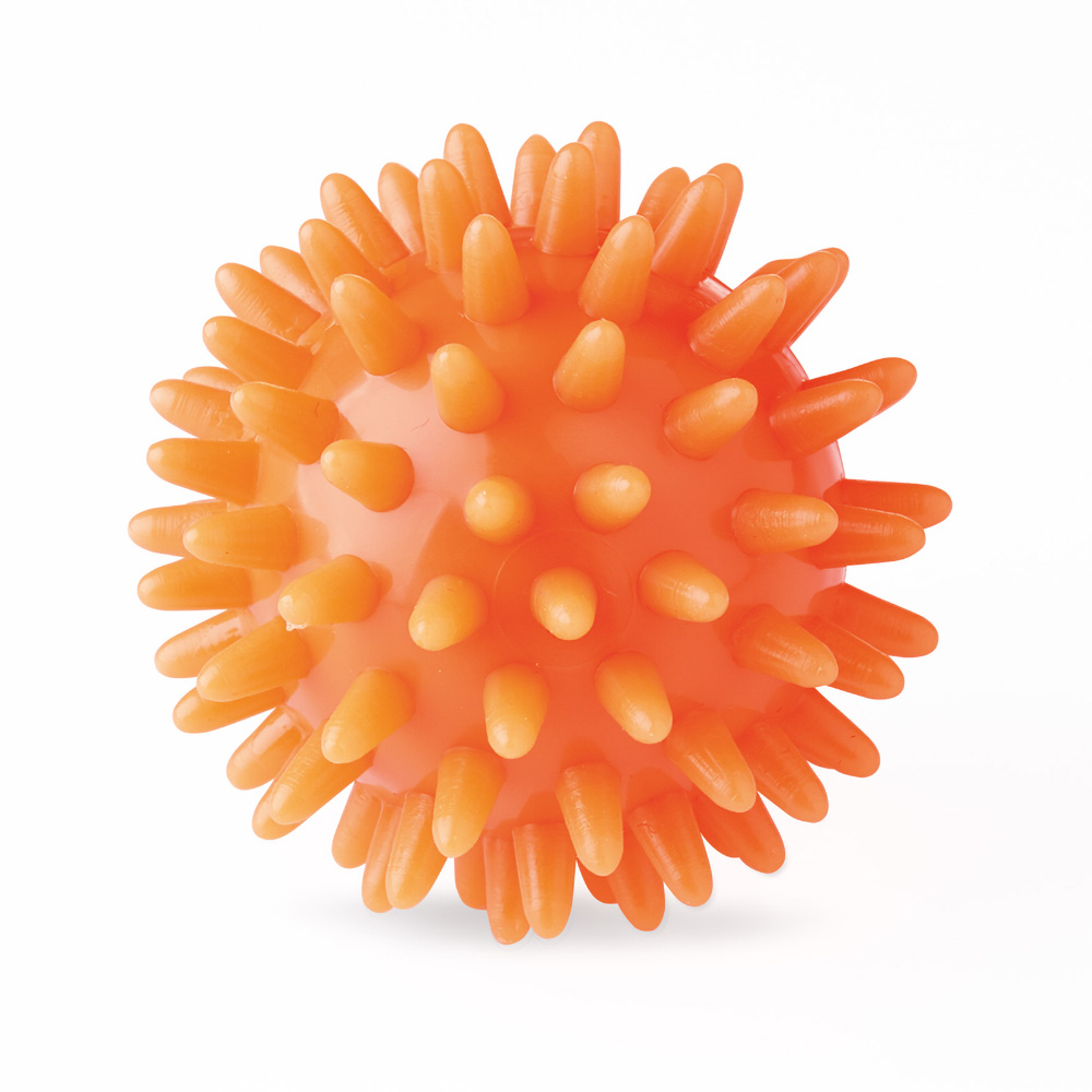 The flexible plastic ball is suitable for finger exercises and grip enhancements. It stimulates the sense of touch in the hands and improves the flexibility and strength in the fingers. The ball is covered with soft rounded spines, which make sure that the nerves in the hand are stimulated and the muscles get stimulated
