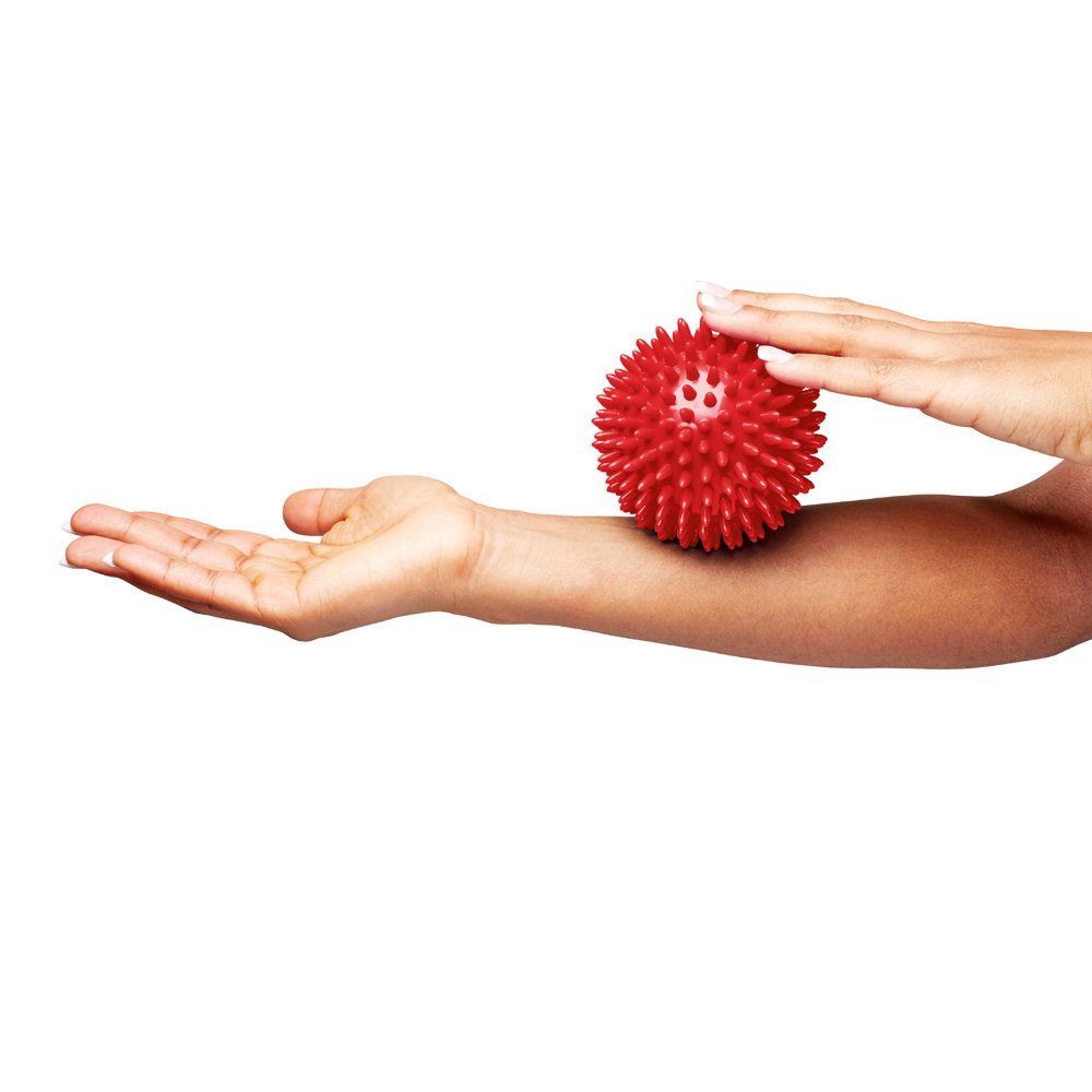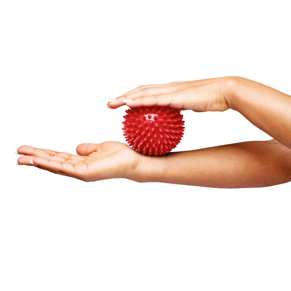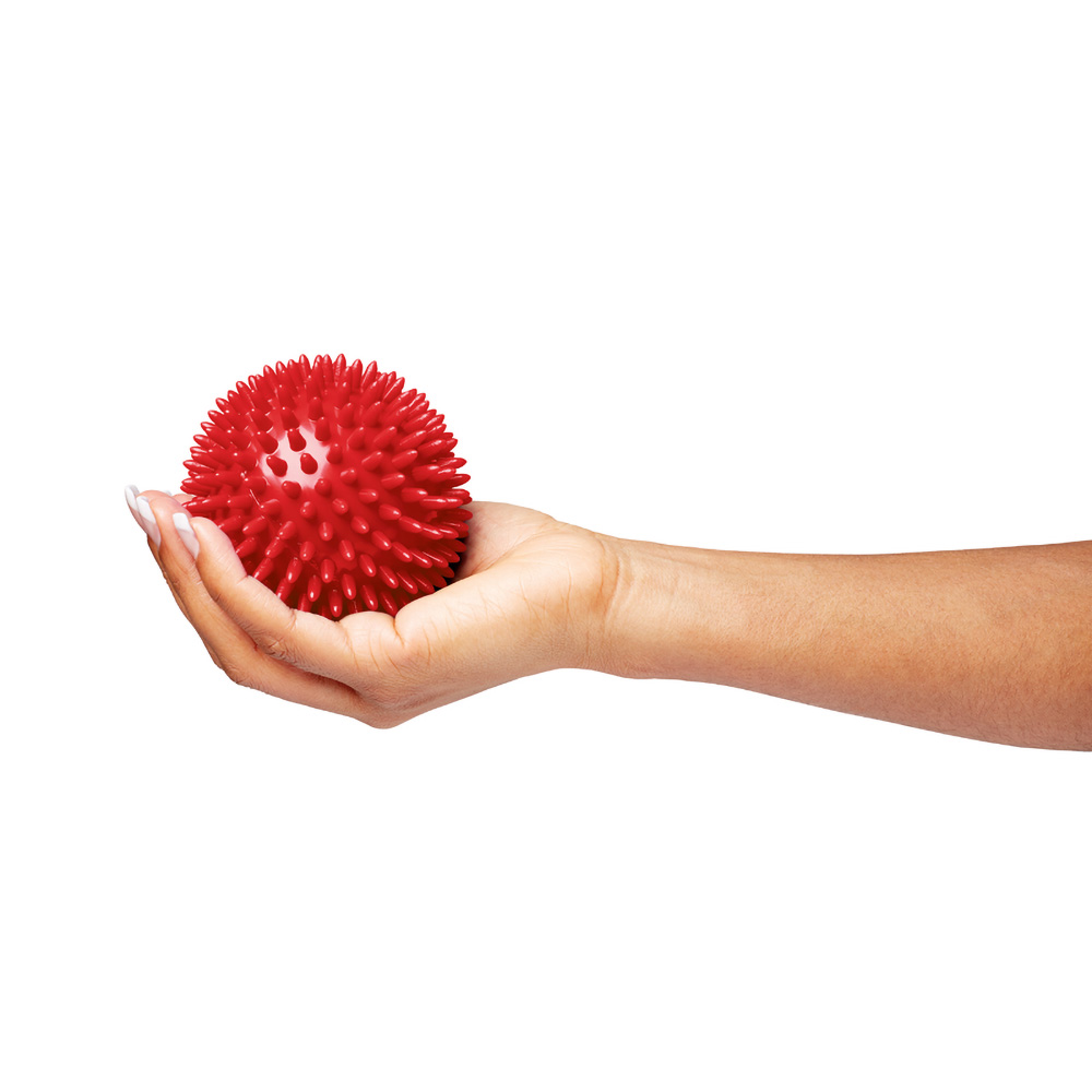 The flexible plastic ball is suitable for finger exercises and grip enhancements. It stimulates the sense of touch in the hands and improves the flexibility and strength in the fingers. The ball is covered with soft rounded spines, which make sure that the nerves in the hand are stimulated and the muscles get stimulated