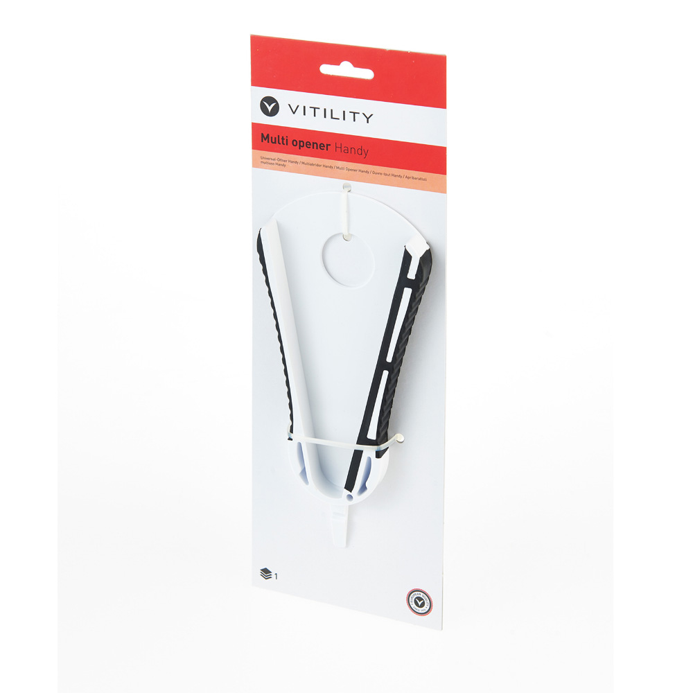 The multi opener makes it easy to open bottles, jars and tins with a tab without having to use much strength. The opener has a comfortable handle that ensures extra grip.