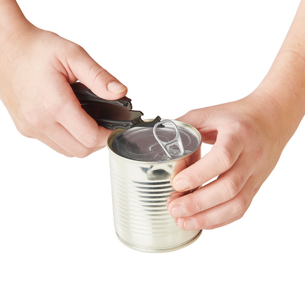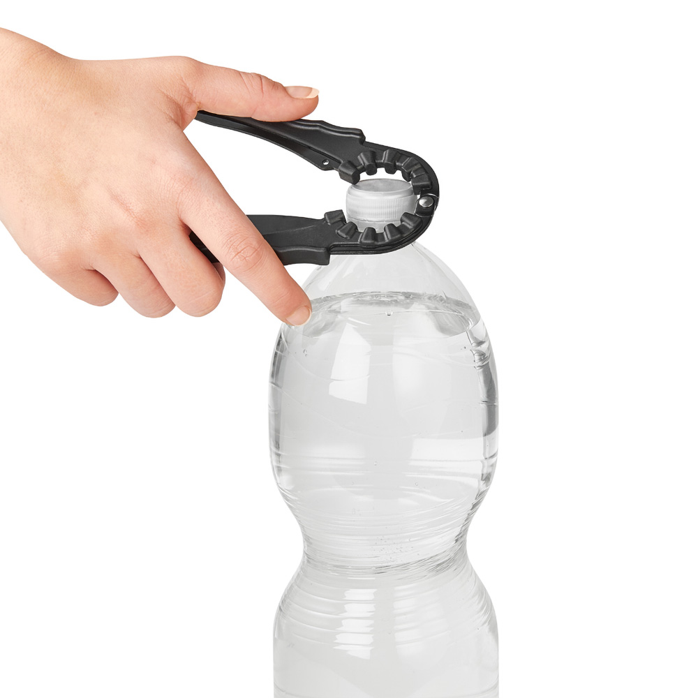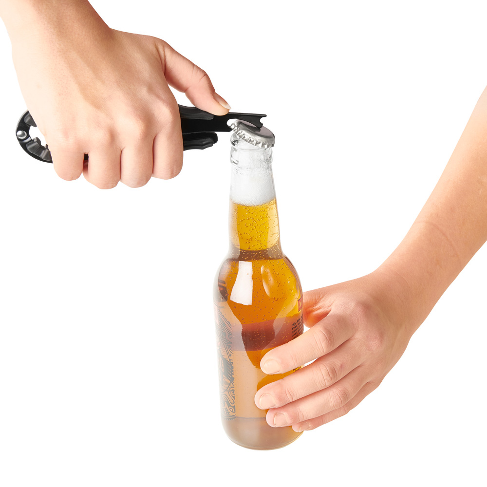 The opener can easily be used to open cans and bottles with little force. The opener is suitable for twist caps, ring pulls on cans and bottle tops. The opener has an ergonomic handle that provides better grip.