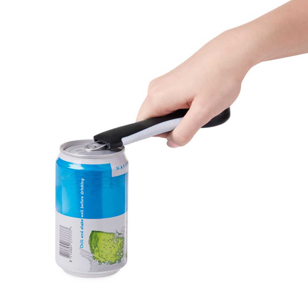 The opener 5-in-1 can be used to simply and with less effort open cans and bottles. The opener is suitable for twist cups, clip openings from cans and crown caps. The opener has an ergonomic handle for better grip.
