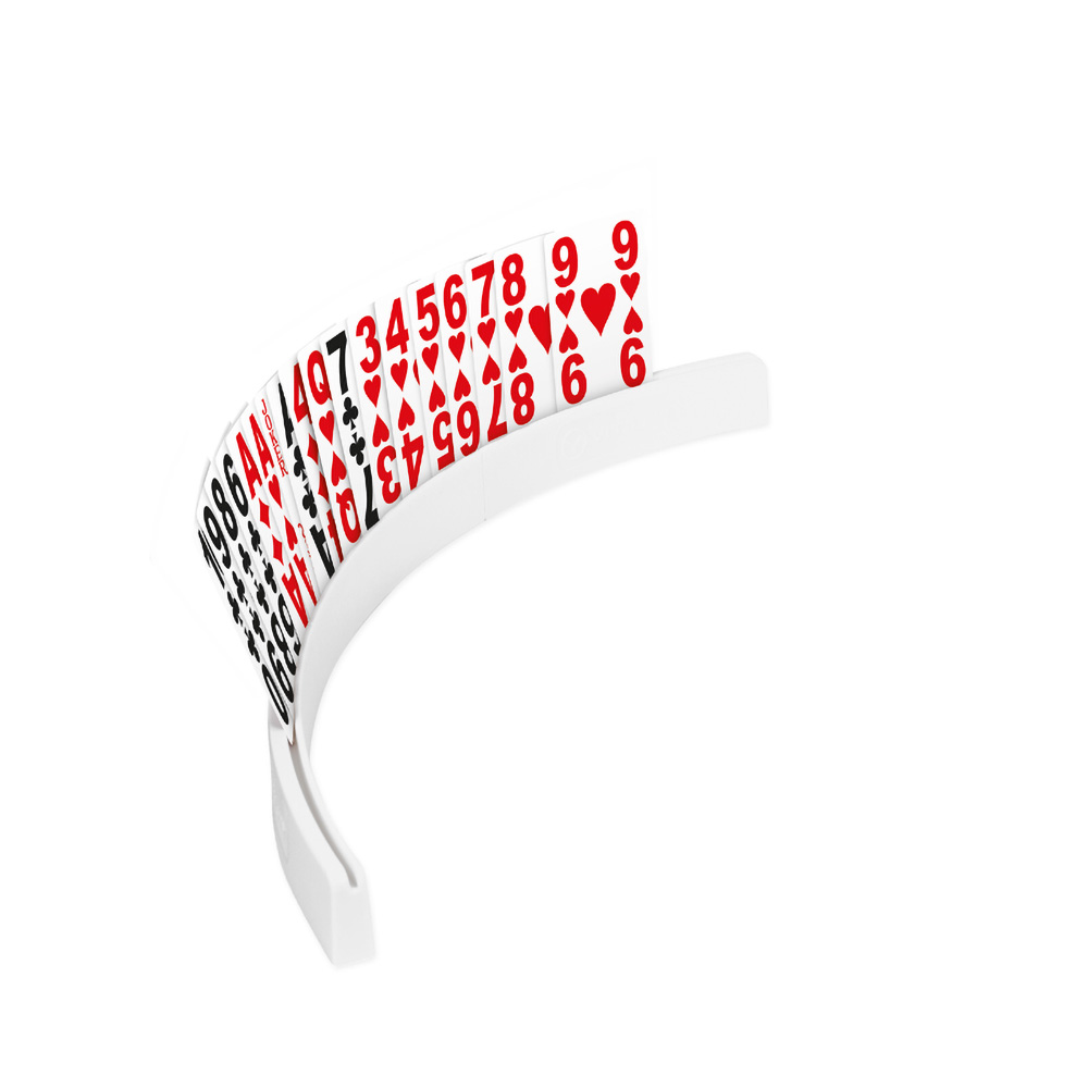 The playing card holder means not having to hold the cards in your hands anymore. Suitable for people who have decreased strength in their hands or can only use one hand. The round shape stabilizes the holder. The holder allows 3 configurations.