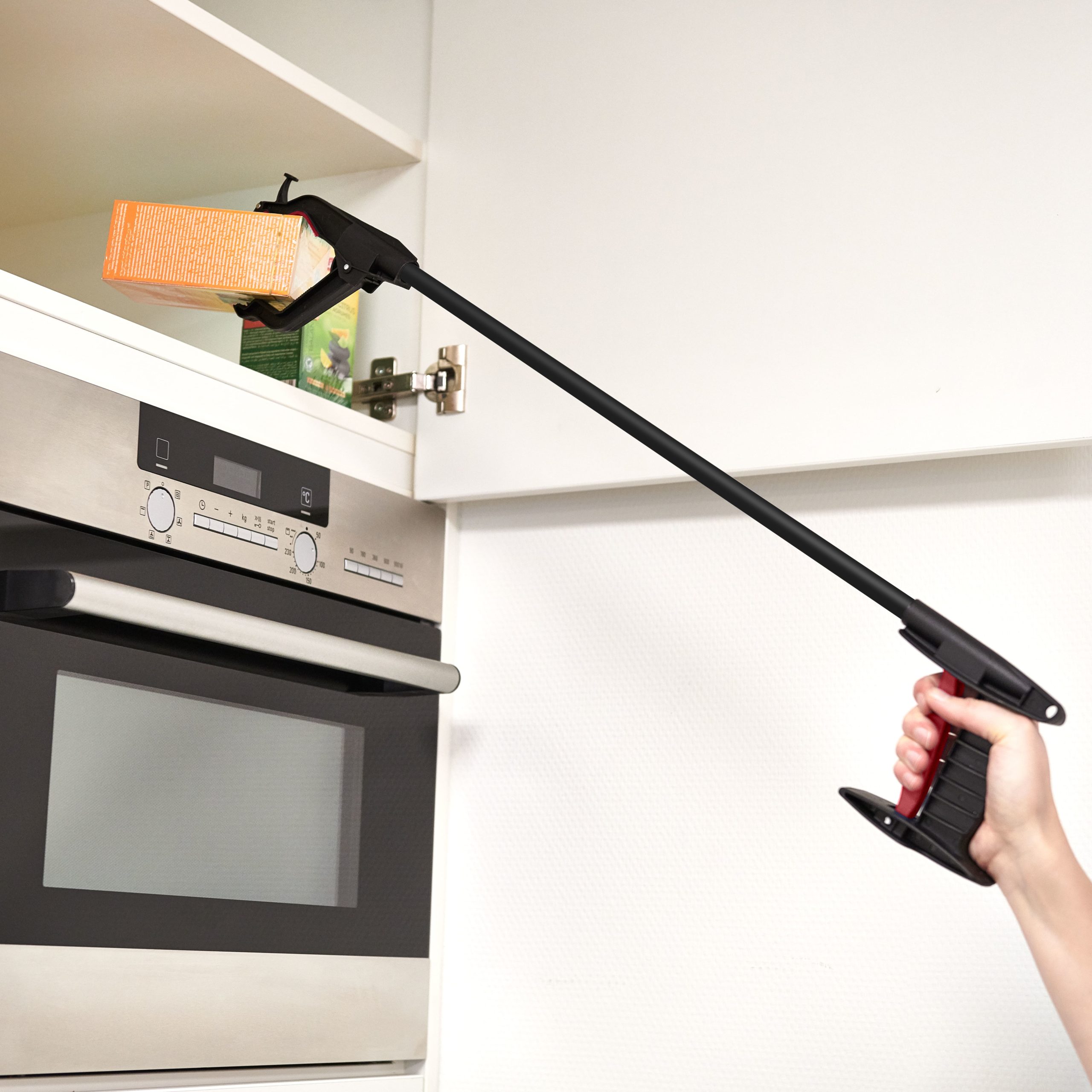 With the reacher it is possible to pick up items which are situated too high or too low, for example in a closet or on the floor, without having to bend or stretch. By squeezing the handle lightly, the reacher closes around the object. The reacher is suitable for holding small and lightweight items, such as remote controles and magazines. Because of the magnet you can also pick up keys easily.