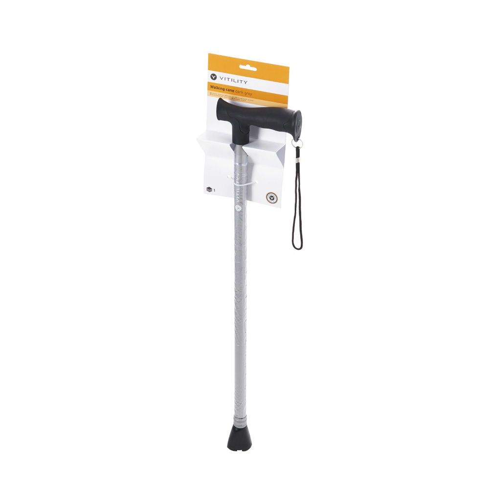 This walking cane offers maximum comfort while walking. The soft upper side of the handle is very pleasant, making it possible to rest your hand in a comfortable manner. It also helps to compensate shocks. The wriststrap can be attached to the walking cane. The walking cane is exclusively designed for having a fluent movement while walking. The cane is height adjustable, and can therefore be used comfortably by everyone.
